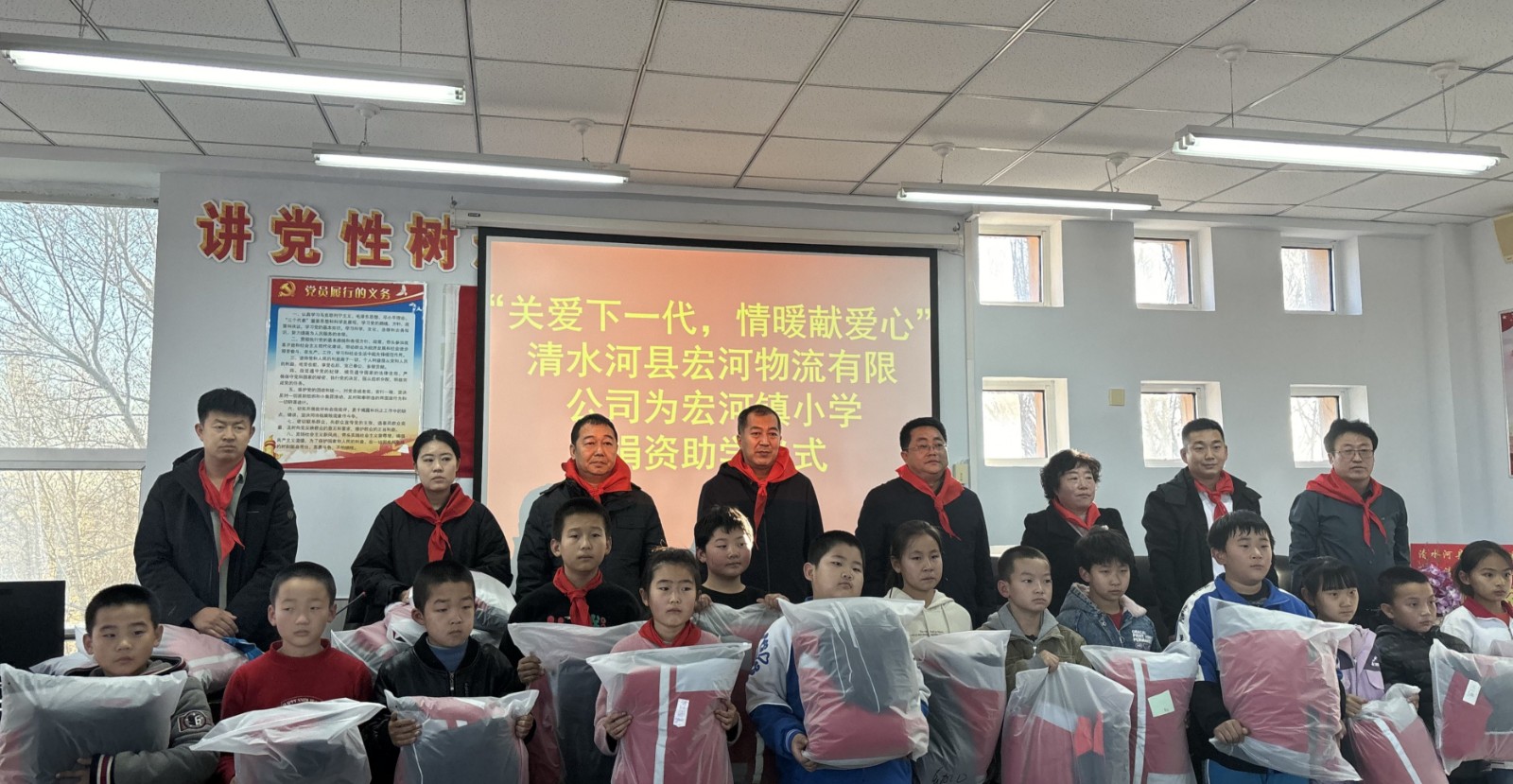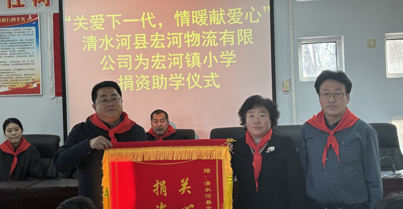 “關(guān)心下一代,情暖獻(xiàn)愛(ài)心”清水河縣宏河物流有限公司與宏河鎮(zhèn)小學(xué)舉行捐資助學(xué)儀式